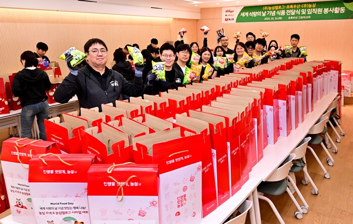 [메가경제=심영범 기자]농심이 농심켈로그와 함께 유엔식량농업기구가 지정한 세계 식량의 날(10월 16일)을 맞아 결식아동들에게 식품을 기부했다고 15일 밝혔다. 지난 2020년부터 기부를 매년 이어오며 올해로 6년 차를 맞았다.