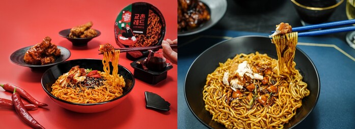 ▲교촌이 레드시크릿 볶음면과 블랙시크릿 볶음면을 선보였다[사진=교촌에프앤비]