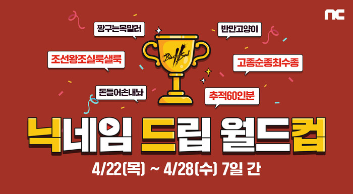 블소2는 사전 캐릭터 생성을 기념해 오는 28일까지 공식 커뮤니티에서 ‘닉네임 드립 월드컵’ 이벤트를 진행된다. 이벤트 게시판에 재미있는 닉네임을 댓글로 작성하면 추첨을 통해 특별한 캐릭터명을 보상으로 제공한다.