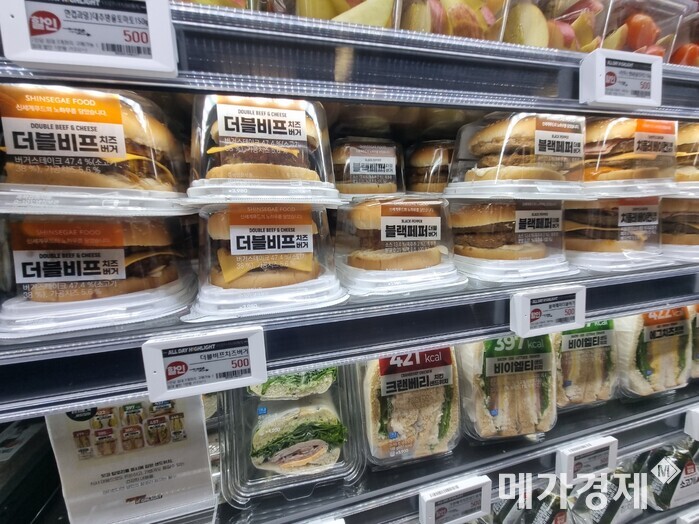 | ▲ 투명 트레이에 담긴 햄버거·샌드위치는 신선도를 강조했다.[사진=메가경제] |