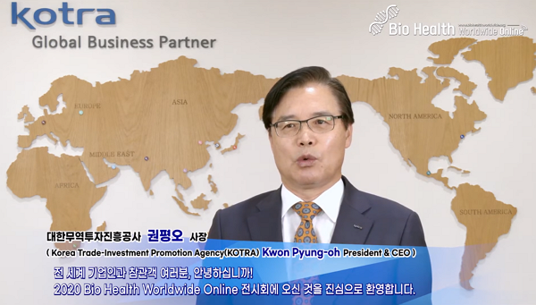 ▲ 개회사를 하는 대한무역투자진흥공사(KOTRA) 권평오 사장. [출처= '바이오헬스 월드와이드 온라인 2020' 유튜브 영상 캡처] |