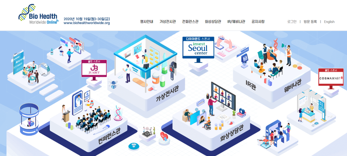 '4개 전시관' K-방역관, 바이오·제약관, 의료기기관, 헬스케어서비스관 [메가경제= 류수근 기자] K-방역을 앞세운 국제 온라인 전시회인 ‘바이오 헬스 월드와이드 온라인 2020(Bio Health Worldwide Online 2020’이 19일 개막했다.