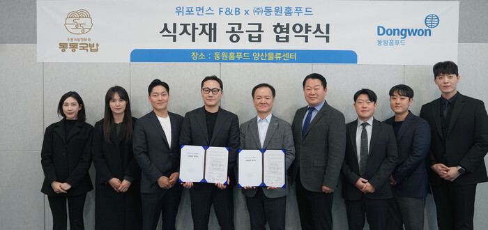 박상천 동원홈푸드 외식식재사업부장은 “위포먼스F&B와의 협력을 통해 동반 성장을 이어갈 수 있도록 노력할 것”이라며 “체계적이고 효율적인 식자재 관리 시스템을 기반으로 신선하고 안전한 제품을 안정적으로 공급하겠다”고 말했다.