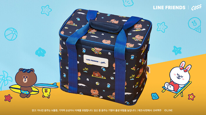 쿨러백은 다가오는 여름을 겨냥해 카스의 시그니처 블루 컬러에 라인프렌즈 캐릭터인 '브라운'이 여름휴가를 즐기는 모습으로 디자인됐다.