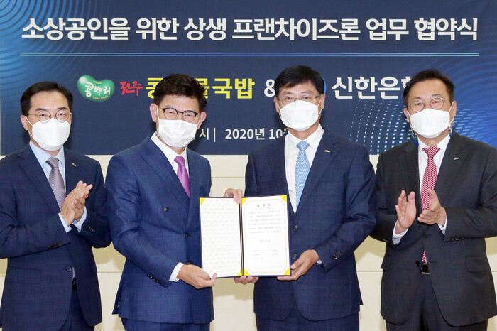 [메가경제= 최낙형 기자] 신한은행은 콩뿌리 전주 콩나물국밥 프랜차이즈를 운영하고 있는 기흥코리아와 ‘신한 상생협력 프랜차이즈론’ 업무협약을 체결했다고 27일 밝혔다.
