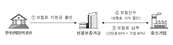 | ▲ 한국산업단지공단 보험료지원 협약보험 기본 구조도 [그래픽=신용보증기금 제공] |