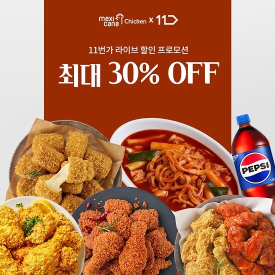 [메가경제=양대선 기자] 치킨 전문 프랜차이즈 멕시카나가 11번가 라이브 방송을 통하여 멕시카나치킨의 세트메뉴 모바일 교환권 4종을 최대 30% 할인 판매한다고 18일 밝혔다.