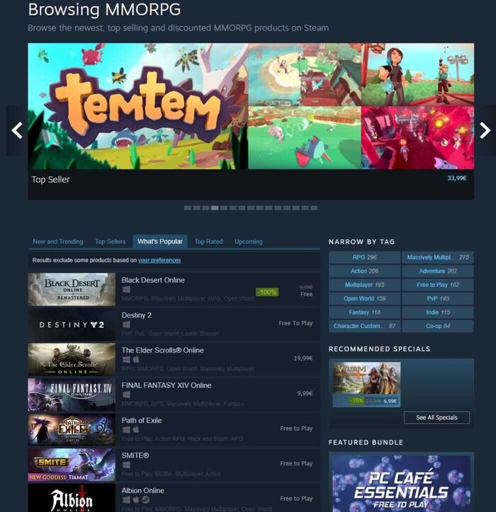 | ▲ 스팀 MMORPG 인기 순위(Whats Popular) 1위 [펄어비스 제공] |