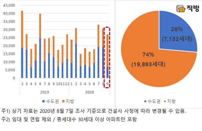 8월보다 64% 감소…지방은 75% 증가, 세종, 전남, 광주 공급 多
