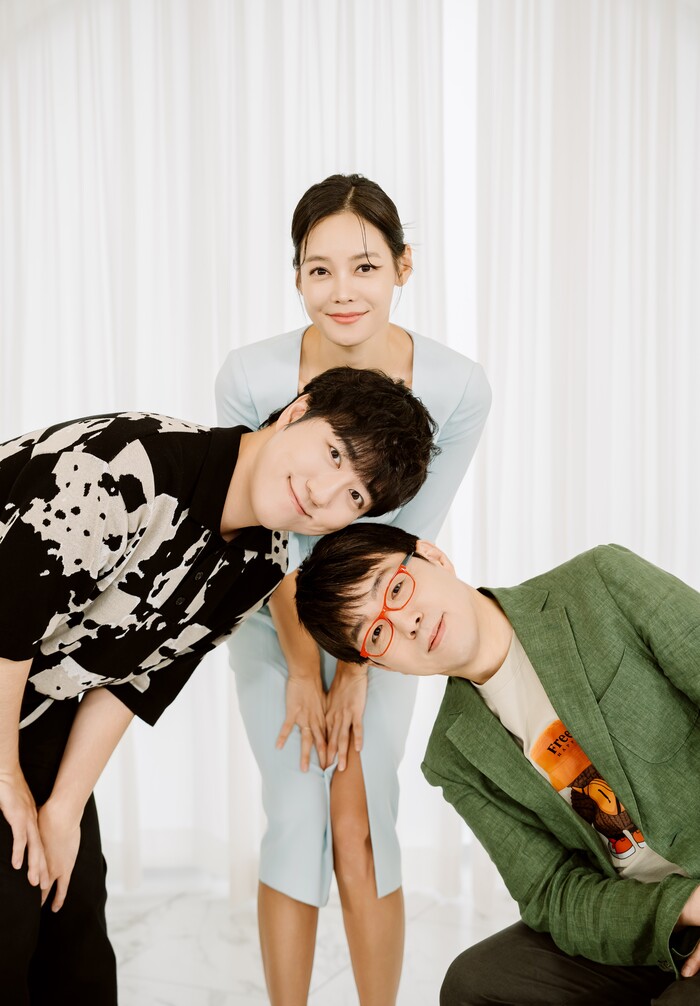 ▲ 영화 평론가 이동진, 과학 커뮤니케이터 궤도, 기자 출신 방송인 안현모가 라플위클리 시즌5 런칭 기념사진을 촬영하고 있다. [사진=한화생명] |
