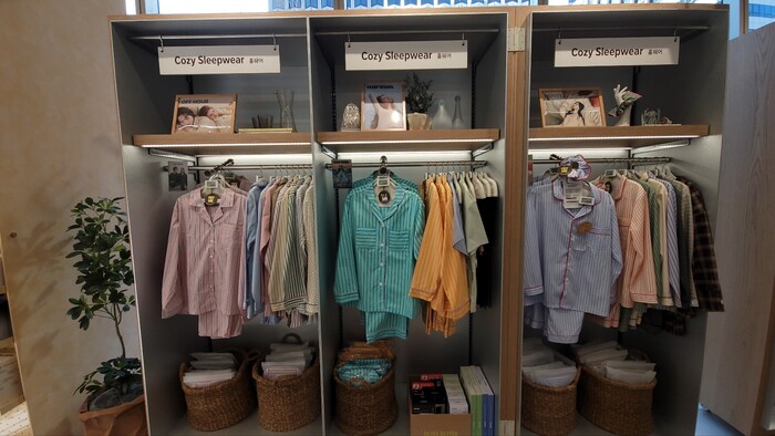 휴식과 수면에 초점을 맞춘 ‘릴렉스 웰(Relax Well)’에서는 수면 관련 웰리스 큐레이션을 한 공간에서 만나볼 수 있다. 조명, 파자마, 슬립 에센셜 제품 등이 눈에 띄었다. 현장 관계자는 "성수에서 운영했던 ‘슬립웰’ 공간의 경험을 확장한 형태"라고 설명했다.
