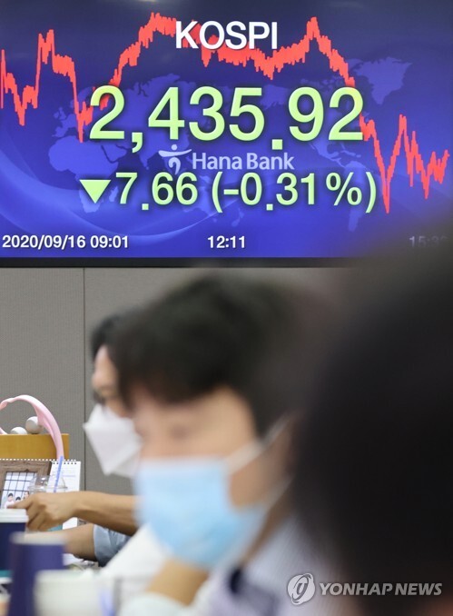 16일 코스피는 7.66포인트(0.31%) 내린 2435.92로 장을 마감했다.