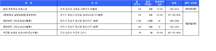 9월 마지막 주 당첨자를 발표하는 단지는 3곳이다.