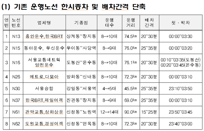 ▲ 심야 올빼미버스 한시 증차 및 배차간격 단축. [서울시 제공] |