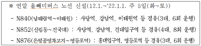 ▲ 연말 올빼미버스 노선 신설. [서울시 제공] |