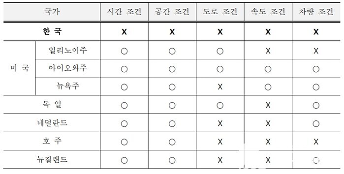 시간, 공간, 주행속도, 차량 등 조건 부여 운전 허용