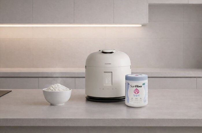 이번 협업의 핵심은 조리와 식사 전 과정을 아우르는 2단계 혈당 관리 방식이다. 먼저 쿠첸의 ‘123 밥솥’에 적용된 저당 기능을 활용해 취사 과정에서 쌀의 당질을 물리적으로 저감한다. 이후 갓 지은 밥에 매일헬스뉴트리션의 ‘셀렉스 썬화이버 당솔브’를 혼합해 식후 혈당 상승 억제 기능을 보완하는 구조다.