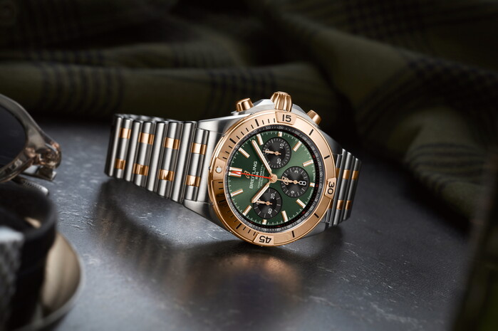 국내에서만 50점 한정 판매하는 이 모델은 18K레드 골드로 감싼 크라운과 베젤, 고급스러운 올리브그린 다이얼과 대비되는 블랙 크로노그래프의 조화가 특징이다. 또한 브라이틀링의 항공‧지상‧해상 3가지 영역의 디자인적 요소와 기능이 모두 반영됐다.