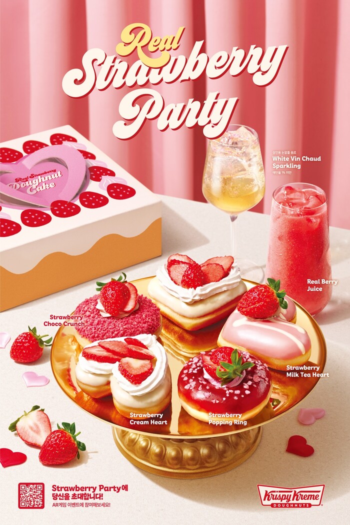 크리스피크림 도넛은 신제품 출시를 기념해 다음 달 28일까지 AR 기술을 활용한 ‘스트로베리 파티’ 게임 이벤트도 진행한다. 게임 미션을 달성하면 신제품 할인 쿠폰을 제공하며, 참여 후 SNS 인증 시 추첨을 통해 백화점 상품권과 모바일 쿠폰 등 경품을 증정한다.
