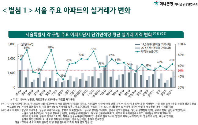 ▲ 서울 주요 아파트 실거래가 변화표 [그래픽= 하나금융경영연구소] |