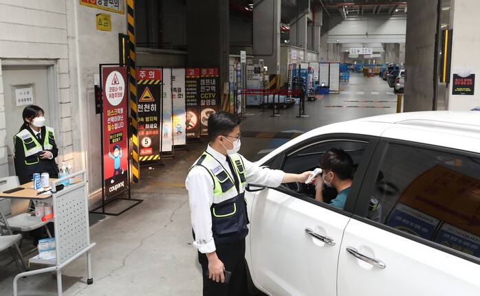 ▲ 쿠팡 배송캠프는 모든 방문자들의 체온 체크를 실시하고 있다.[사진= 쿠팡 제공] |