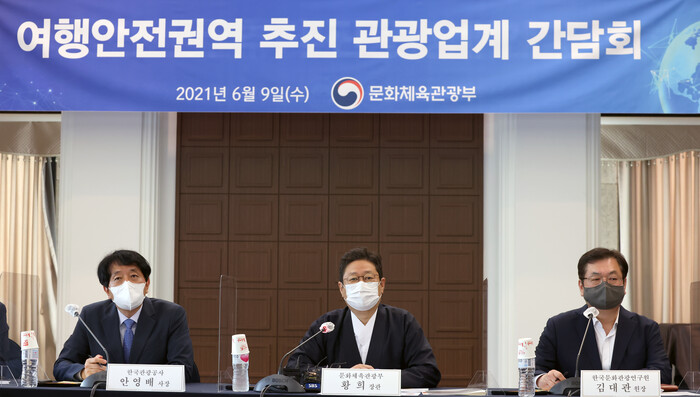 ▲ 황희 문화체육관광부 장관이 9일 서울 중구 한국프레스센터에서 열린 '여행안전권역 추진 관광업계 간담회'에서 발언하고 있다. [문화체육관광부 제공] |