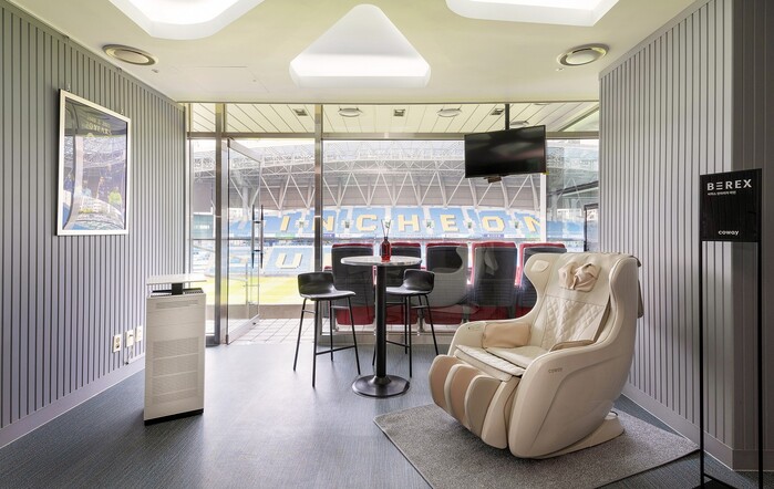 코웨이 스카이박스는 인천 중구 도원동의 인천유나이티드 홈구장인 인천축구전용경기장에 마련됐다. 코웨이 비렉스 안마의자 마인‧노블 공기청정기가 설치됐다.
