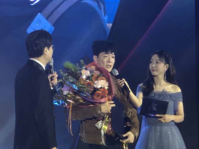 | ▲운명진 네오플 대표가 12일 부산 벡스코에서 열린 대한민국 게임대상 2025 행사를 통해 최우수상 수상 소감을 전하고 있다. [사진=메가경제] |