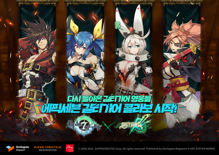 한편, 에픽세븐은 지난 2019년 4월과 지난해 5월 두 차례에 걸쳐 길티기어와의 콜라보레이션 이벤트를 진행한 바 있으며, 길티기어의 IP(지적재산권)를 활용한 콜라보레이션 영웅 4종과 그들이 에픽세븐의 세계에 들어오면서 펼쳐지는 이야기를 다룬 특별 서브 스토리를 공개했다.