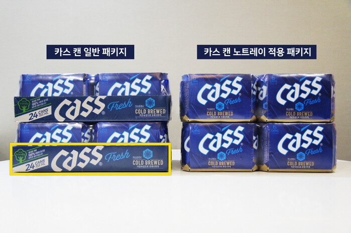 또한 지난달 말부터는 편의점용 카스 프레시 500ml 4캔 패키지에서도 종이 트레이를 없애며 편의점 카스 프레시 캔맥주 전 상품에 노 트레이 패키지 적용을 완료했다.