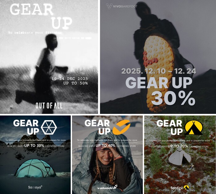 조이웍스의 이번 GEAR UP 프로모션은 온, 오프라인에서 동시에 진행되며 2025년 한해 동안 러닝과 아웃도어를 통해 성취감과 희열 그리고 아웃오브올을 통해 한 단계 발전한 '퍼포먼스 고관여 고객들'에게 축하와 격려 및 보상을 담아 특별한 할인을 열어주는데에 그 의미가 있다.