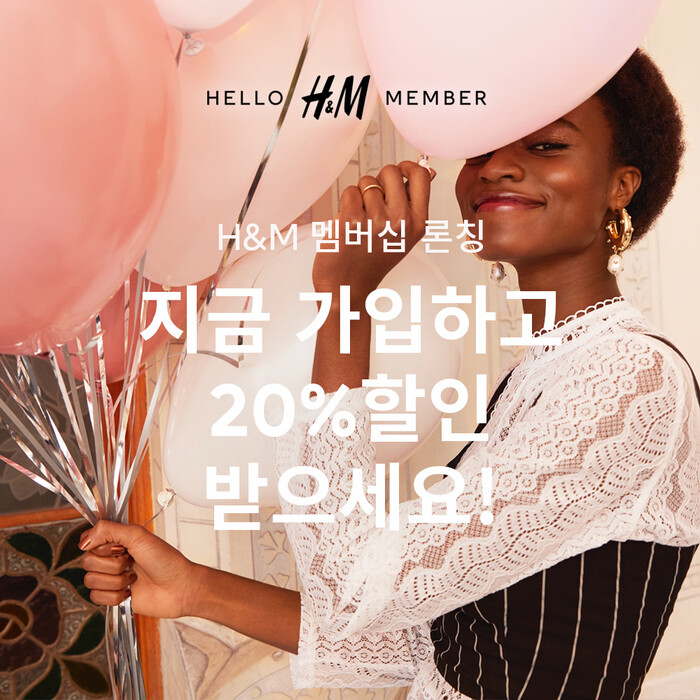 H&M코리아는 멤버십 런칭을 기념해 5일부터 15일까지 가입하는 회원에게 20% 할인 쿠폰(기간내 1회 사용)을 제공한다.