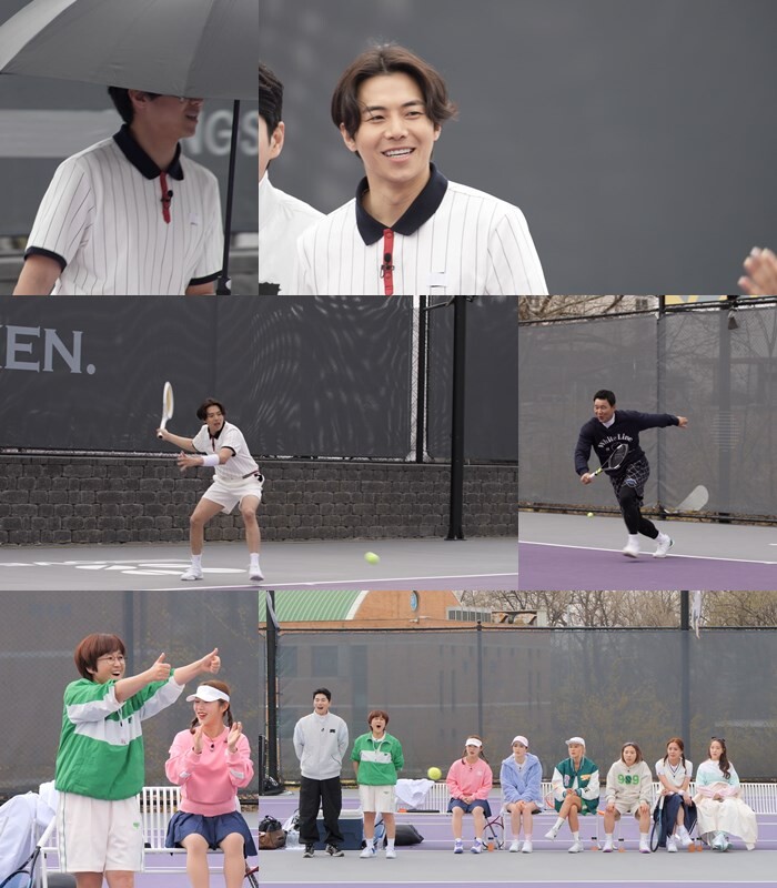 이날 이형택 감독은 “특별한 분과 함께 집중 훈련을 해보겠다”라며 뉴페이스의 등장을 예고한다. 이어 멀리서 검정 우산으로 얼굴을 가린 한 남성이 등장하자, ‘맏언니’ 송은이부터 ‘연습생’ 한보름 등 전 선수들은 “비율이 너무 좋다”며 함성을 지른다. 신봉선은 “얼굴을 가렸는데도 잘생겼어”라고 환호한다.