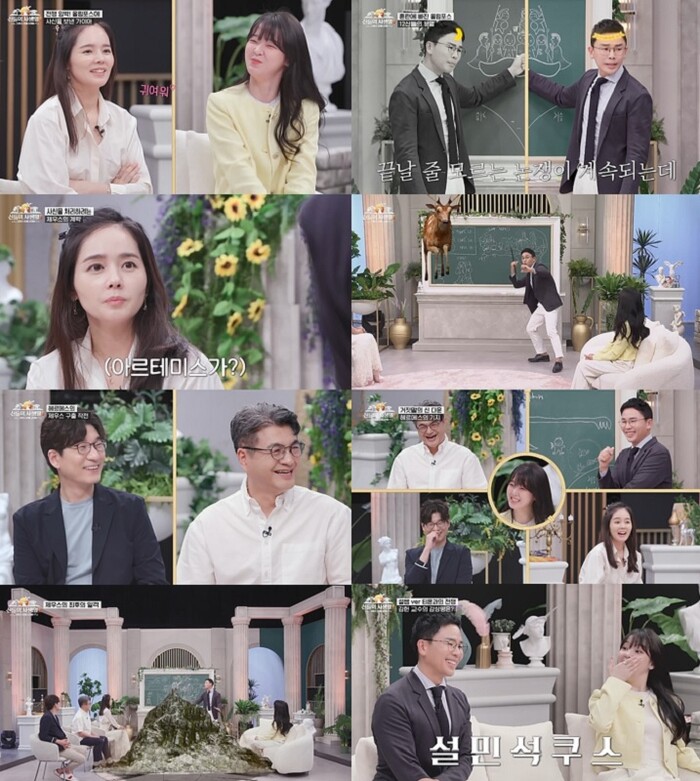 ▲ '신들의 사생활2' 한가인이 제우스의 성공 신화 이야기에 깊은 공감을 표했다. [사진=MBN] |