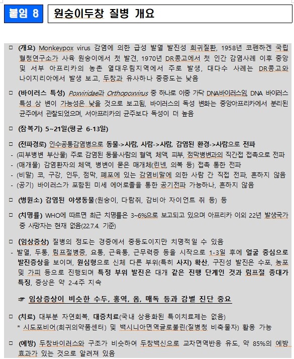 ▲ 원숭이두창 질병 개요. [질병관리청 제공] |