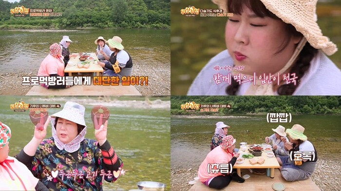 이날 4인방은 “다슬기 20kg을 잡아야 한다”는 ‘고용주’ 동강 계장님의 주문에 양손 전법(?)은 물론, 분업화 시스템까지 가동한다. 빠른 속도로 다슬기를 잡아가는 4인방의 모습에 계장님은 놀라워하며 ‘다슬기 쌈’ 새참을 내온다. 이후 4인방은 평상에 앉아 두런두런 이야기꽃을 피우며 새참을 먹는다.