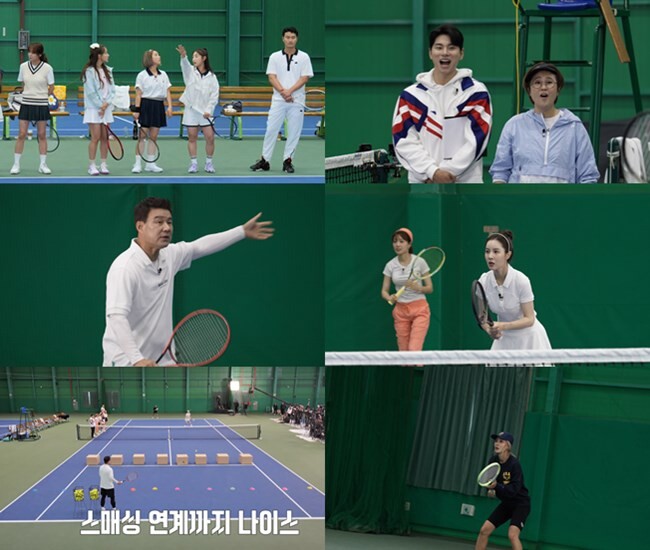 실제로 이날 평가전에는 ‘구력 8년 차’ 가수 알리, 패션디자이너 요니P, 배우 김희정, 배우 박가령, 방송인 이수정, 모델 지현정이 총출동한 ‘연예계 에이스팀’이 등장해 긴장감을 조성한다. 이에 맞서는 ‘위닝샷’ 팀으로는 신봉선X고우리, 홍수아X황보, 손성윤X차해리 등 총 3개의 복식조가 출격한다.