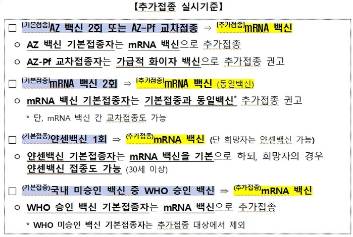 ▲ 추가접종 실시기준 [질병관리청 제공] |