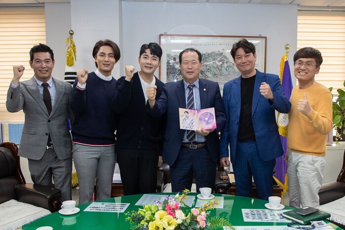 ▲ 가수 최대성-진웅이 군산시 김영일 의장을 만났다. [사진=모비포유 제공] |