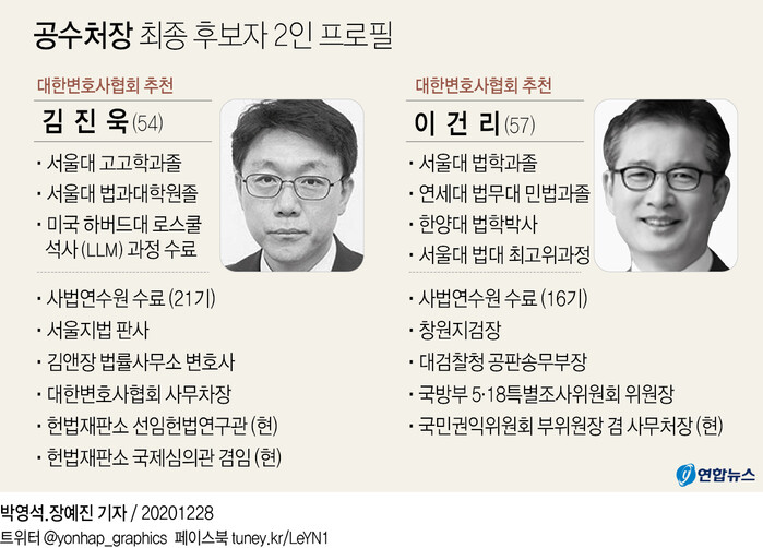 ▲ 공수처장 최종 후보자 2인 프로필. [그래픽= 연합뉴스] |