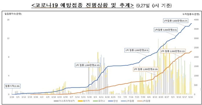▲ 코로나19 예방접종 진행상황 및 추계. [코로나19 예방접종대응추진단 제공] |