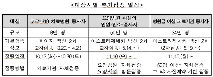 ▲ 대상자별 추가접종 일정. [코로나19 예방접종대응추진단 제공] |