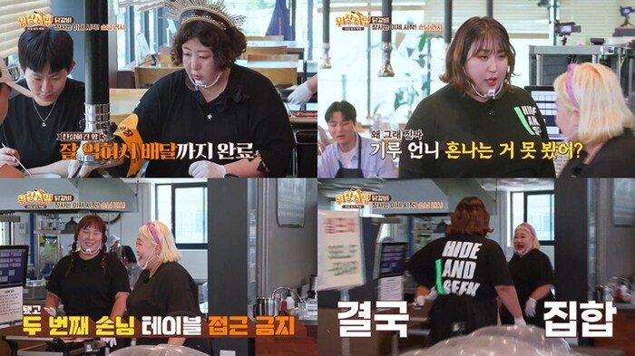 이에 손님을 케어하는 ‘손님파’ 신기루-홍윤화와, 불판 갈기와 상 치우기 등을 도맡게 된 ‘잔업파’ 김민경-풍자로 나뉘어 신경전을 벌이게 되고, 결국 풍자는 “나 허리 아파서 더 못해”라며 파업을 선언한다. 그동안 땡볕에서 험난한 실외 근무만 하던 이들이 첫 실내 취업에 환호했음에도 이내 ‘일촉즉발’ 갈등에 부딪힌 이유가 무엇인지에 관심이 쏠린다.