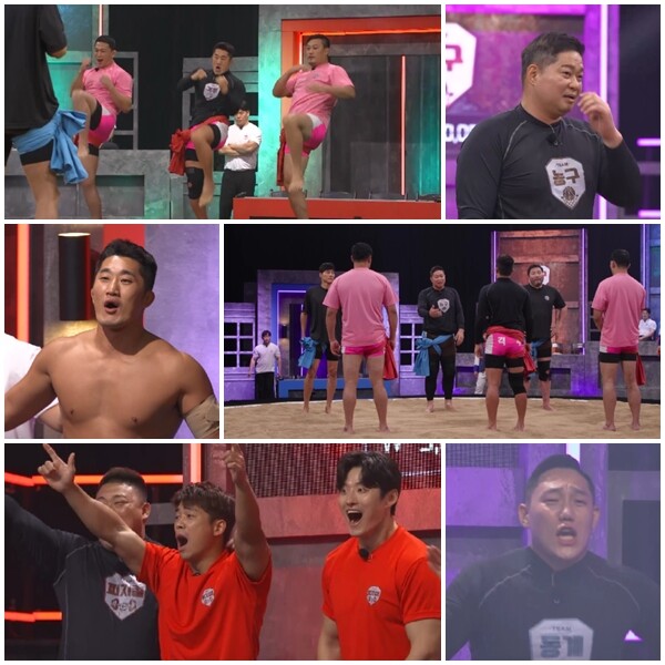 그런가 하면, 본 경기에서는 모두가 기립, 경악하는 경기 결과가 벌어지는데, 충격적인 ‘잡채기’ 현장을 직관한 MC 이경규-배성재는 “모래판의 이변! 씨름의 묘미”라고 목이 터져라 외친다. 이변의 주인공으로 등극한 이 선수는 “봤어? 봤냐고!!”라며 호랑이 포효를 내지른다. 과연 모래판을 충격의 도가니에 빠뜨린 선수의 정체가 누구일지, 그리고 농구팀은 격투팀을 격파하고 기사회생할 수 있을지 초미의 관심이 쏠린다.