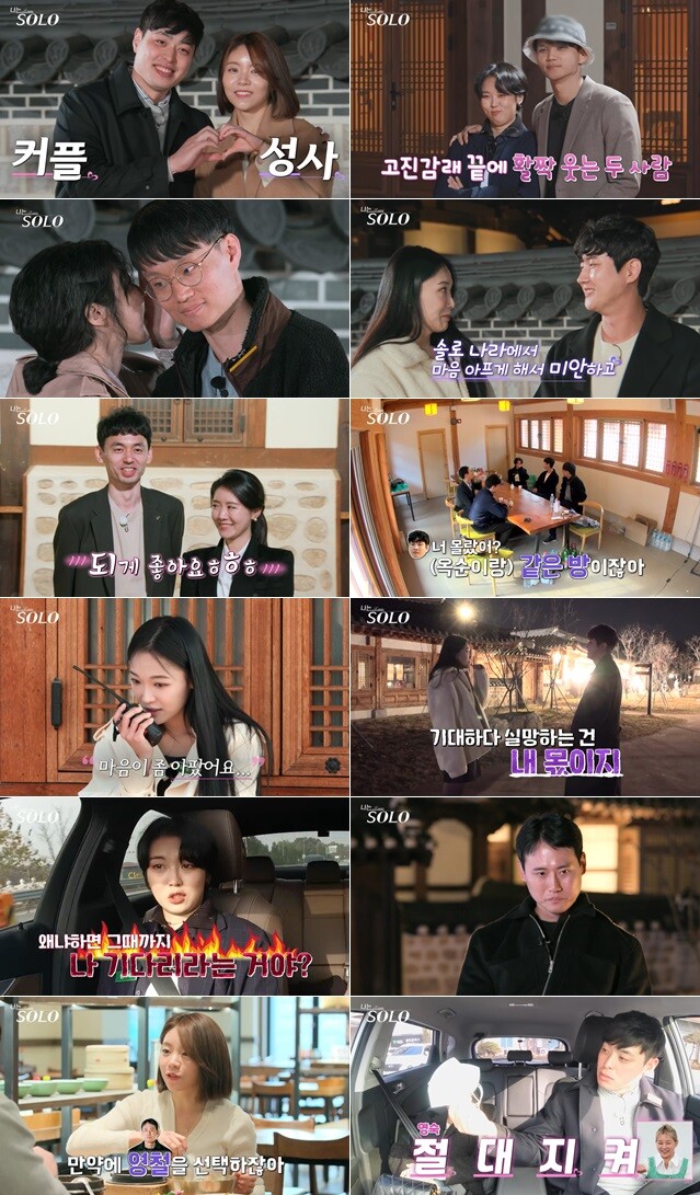 드디어 13기의 최종 선택이 진행됐다. 가장 먼저 영수는 “‘솔로나라’에서뿐만 아니라 밖에 나가서도 인연을 이어가고 싶은 분이 있다”며 현숙에게 직진했다. 영수의 모호한 태도에 눈물까지 흘렸던 현숙은 “사랑에 있어서 늘 좀 바보 같아서, 이를 고치려고 ‘솔로나라’에 온 건데, 내가 좀더 바보가 된 것 같다. 화가 나지만 덕분에 즐거웠어”라고 한 뒤 영수를 선택해 첫 번째 커플이 됐다.