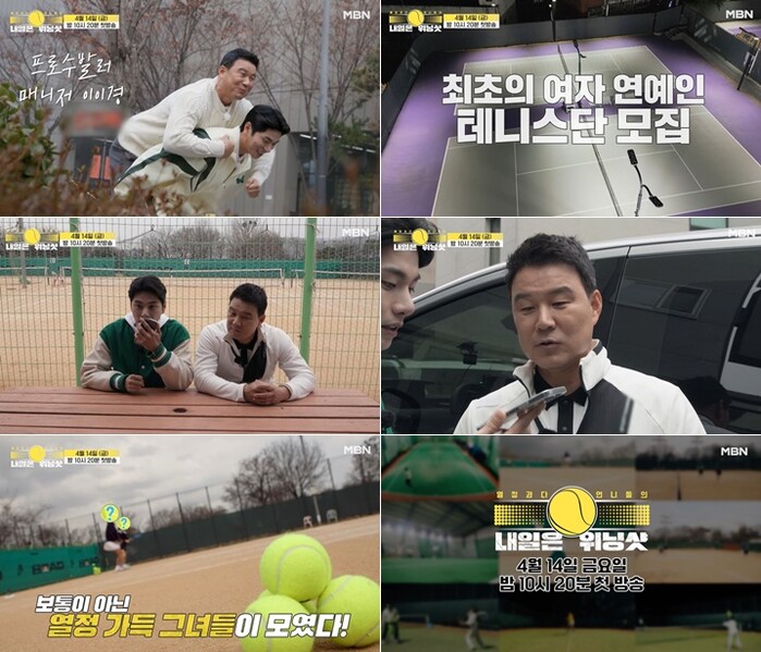 ‘테니스 레전드’ 이형택 감독과 ‘프로수발러’ 이이경 매니저, ‘열정 과다 언니들’의 테니스 도전 및 성장, 우정을 담아낼 MBN ‘열정과다 언니들의 내일은 위닝샷’은 오는 4월 14일(금) 밤 10시 20분 시청자들을 찾아간다.