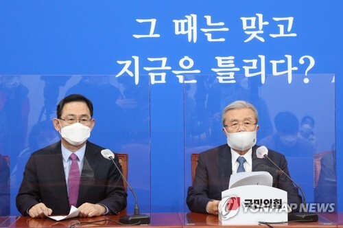 국민의힘 김종인 비상대책위원장은 이날 비대위 직후 기자들과 만나 "민주당은 정직성을 상실했다"며 "당헌·당규에 정해 놓은 국민에 대한 약속을 당원들 투표만 갖고 뒤집는 게 온당한가"라고 되물었다.