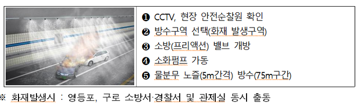 특히, 지하도로에 전용소방차 5대가 상시 배치돼 있어 화재진압 및 구조구난 작업에 즉각적으로 대응할 수 있으며, 전용소방차에는 전기차 화재진압을 위한 특수장비(압축공기포)도 탑재돼 있다.