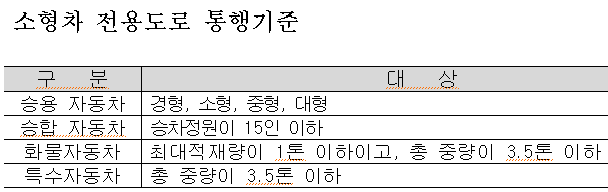 ▲ 소형차 전용도로 통행기준. [서울시] |