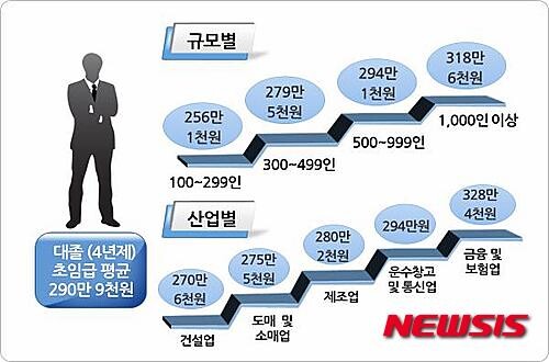 사실 대졸 신입 초임은 대기업과 중소기업에 따라 그리고 업종별에 따라 상당한 격차를 드러내기도 한다. 또 고용자와 피고용자 사이에서도 간극이 생기기 일쑤다.